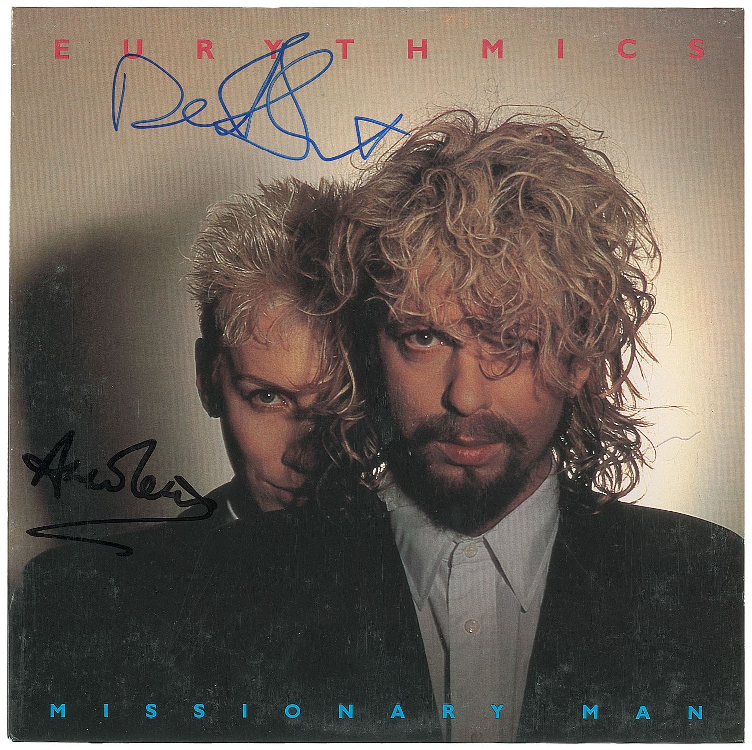 'Missionary Man / Take Your Pain Away' 12? single album signed on the front in black felt tip by Annie Lennox, and in blue felt tip by David A. Stewart. In fine condition. The record is included.
