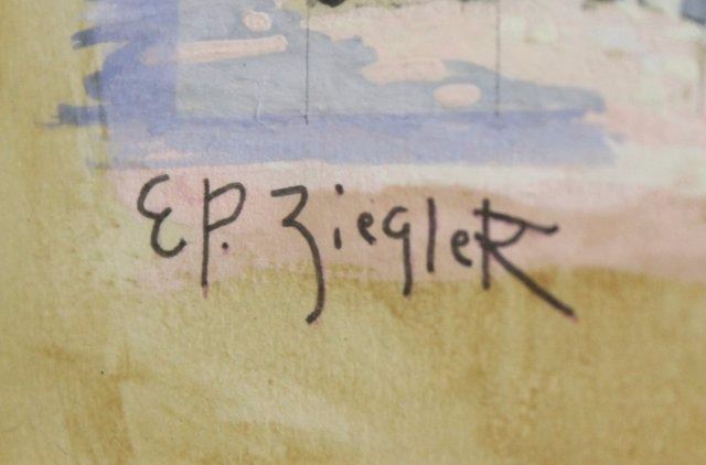 Eustace Paul Ziegler (1881-1969), Not taken out of frame. Work on paper. 4 1/4" x 4" unframed, 13" x 12 1/2" framed.