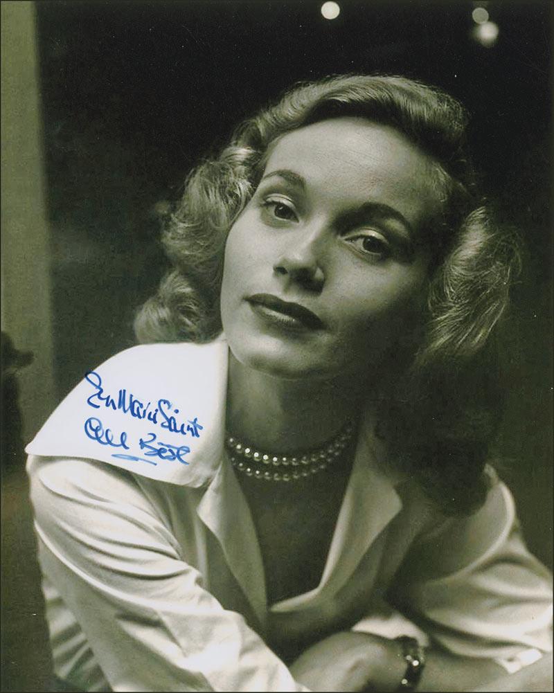 Satin-finish 8 x 10 photo, signed in blue felt tip, “Eva Marie Saint, All best.” In very fine condition.