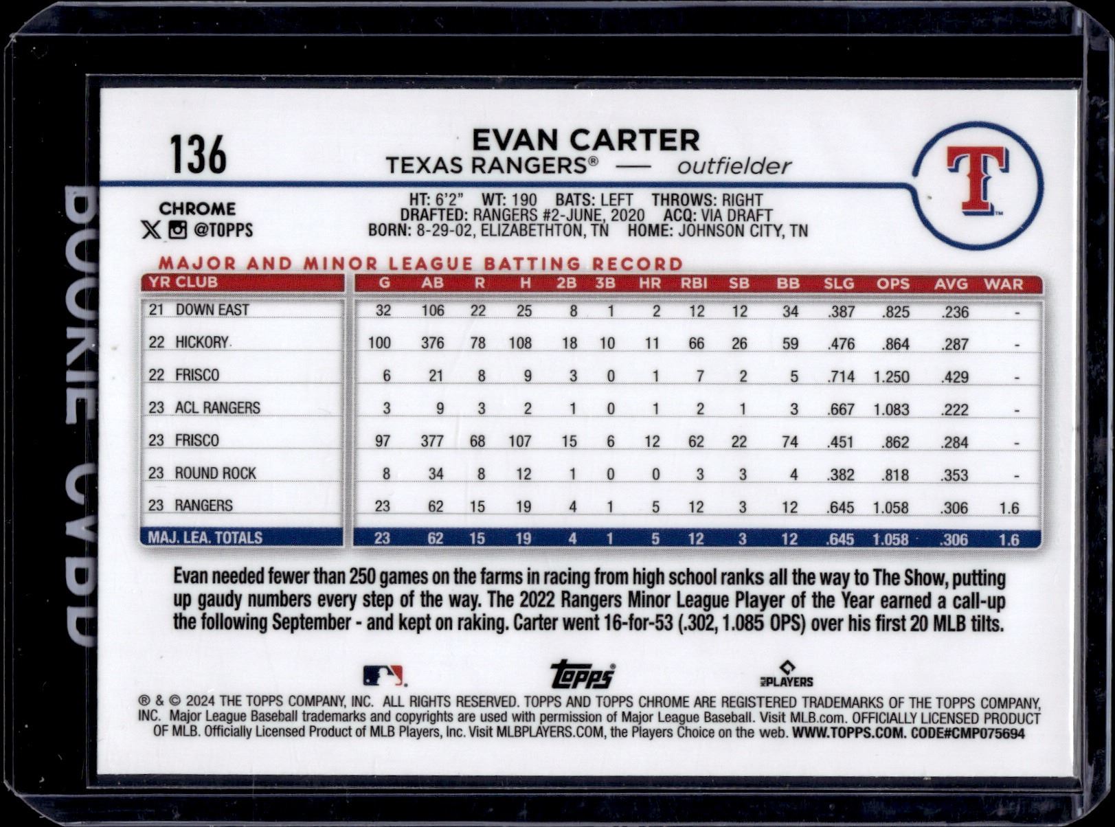 Evan Carter 6/99 Green Ray Wave 2024 Topps Chrome #136