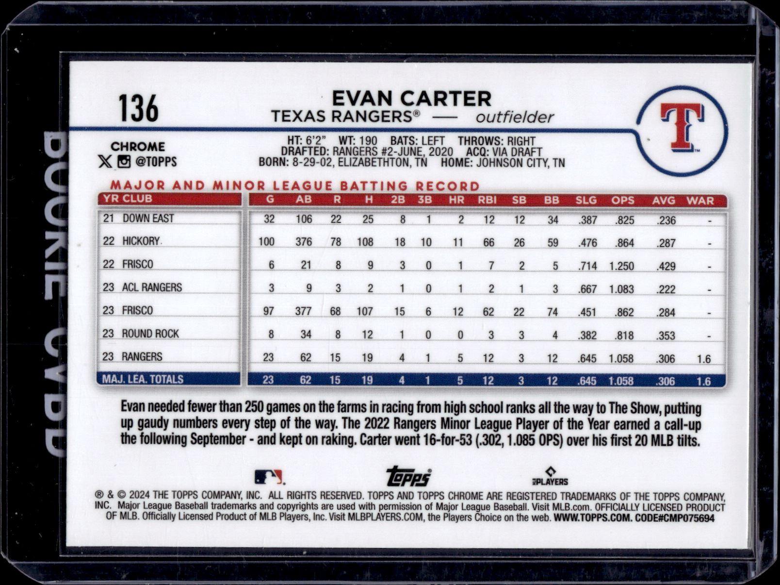 Evan Carter Green Raywave Refractor RC /99 2024 Topps Chrome #136