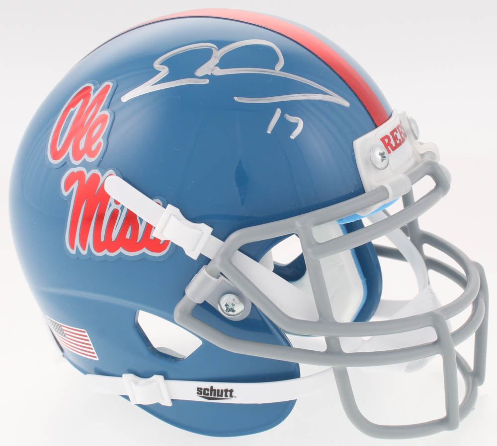 Schutt Ole Miss Rebels mini helmet. Hand signed in silver paint pen by Evan Engram.