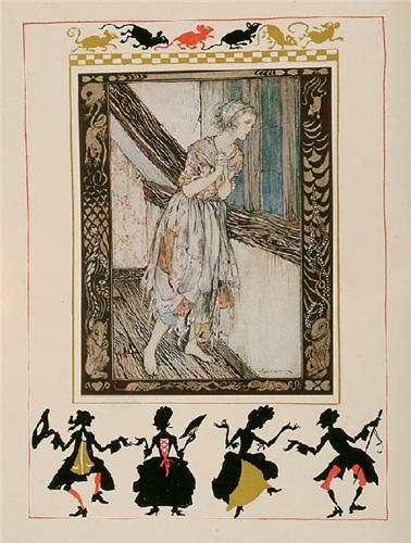 Evans, C.S. retold by. CINDERELLA. 110 p. Coloured frontis and numerous silhouette illustrations by Arthur Rackham. 4to, original full vellum, gilt title and decorative illustrations on top board and spine, pictorial endpapers, teg. Limited to 525 copies of which this is hand-numbered 175 and signed by Arthur Rackham. This edition de luxe contains an additional plate not included in the ordinary edition.