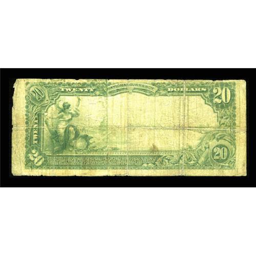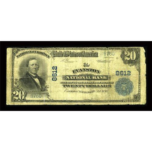 <B>Evanston, WY</B></I> - $20 1902 Plain Back Fr. 652 <B>The Evanston NB</B></I> Ch. # 8612<BR> Well circulated and with a split near the bottom serial number, but scarce enough to be of considerable interest to this state's many collectors. <B>Very Good.</B></I><BR><BR><b>Shipping:</b> Coins & Currency (<a target="_blank" href="http://www.heritageauctions.com/common/shipping.php">view shipping information</a>)