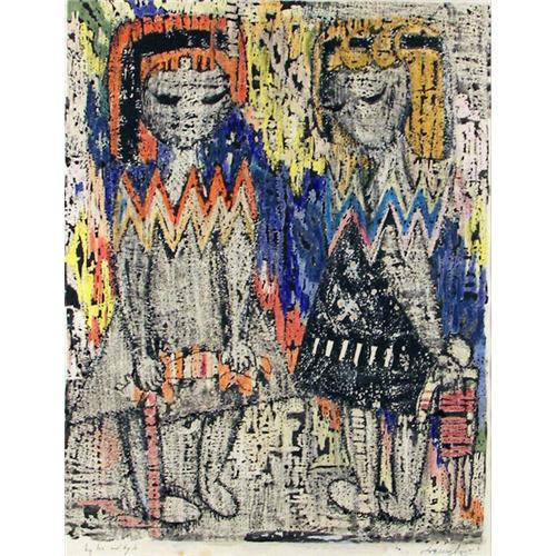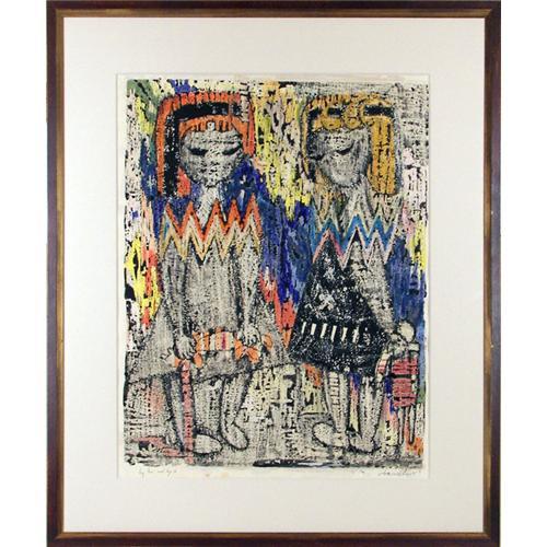 Eve Drewelowe (1899-1989) Gouache & Wax Resist, "Ky Lee & Ky Lo", 1961, 28" x 22", signed lower right