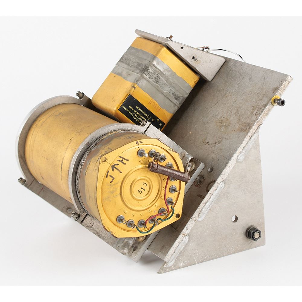 Important gyroscope package built by famed rocket engineer Bob Truax for one of Evel Knievel's Skycycle X-2 rocket bikes, measuring 9Àù x 9Àù x 9Àù, featuring a cylindrical vertical gyro ("Amount Gyro, 817100, Western Electric GA-110119, Serial No. W-114403") and a square rate gyro (hand-marked "Pitch"), mounted together on an aluminum bracket. Both were government surplus from a Nike missile, and have parts of the cases trimmed to better fit into the Skycycle. In very good to fine condition.