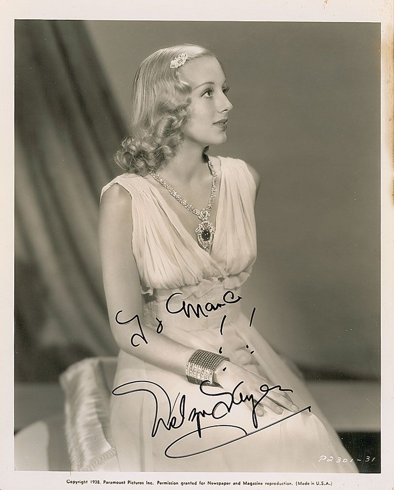 Pearl-finish 8 x 10 photo of Keyes in Sons of the Legion, signed and inscribed in black felt tip, “To Marc!! Evelyn Keyes.” In very good to fine condition, with scattered surface marks and impressions, and some soiling to the upper right border.