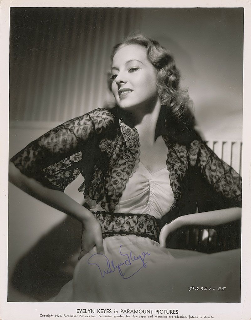 Glossy 8 x 10 Paramount Pictures publicity photo, signed in blue felt tip. Scattered creases and surface impressions, otherwise fine condition.