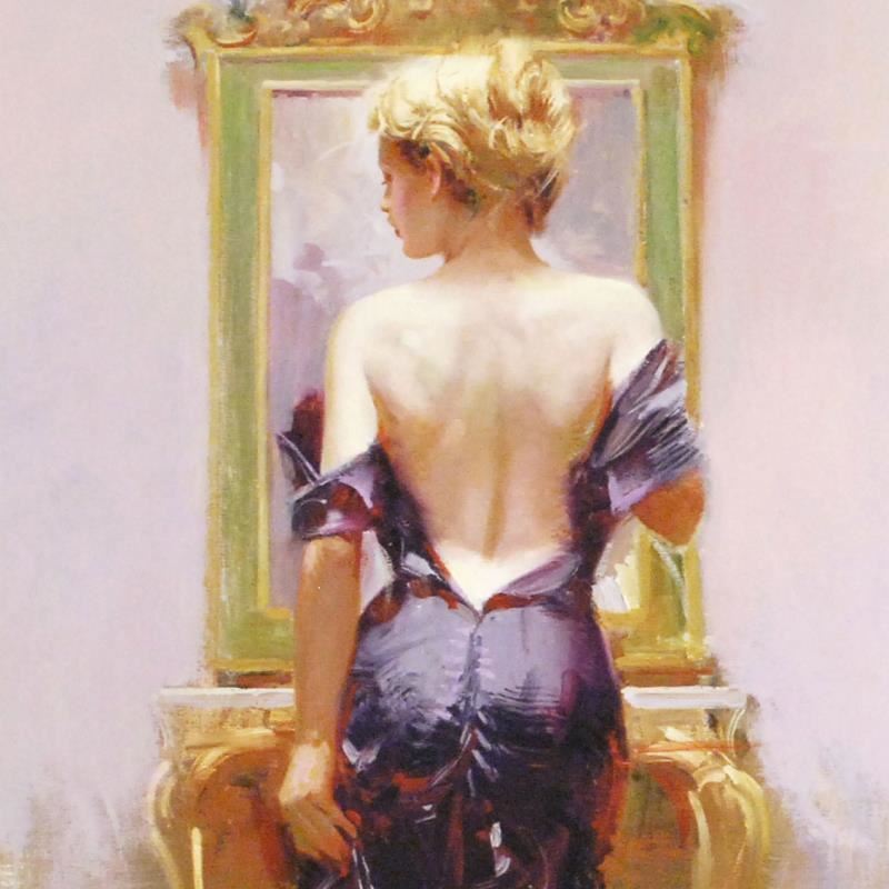"Evening Elegance" is a limited edition giclee on paper by Pino (1939-2010). The piece comes numbered and is hand signed by the artist. Includes Certificate of Authenticity. Measures approxiamtely 16 x 16" (image).