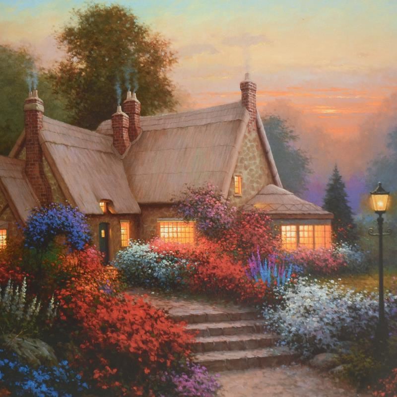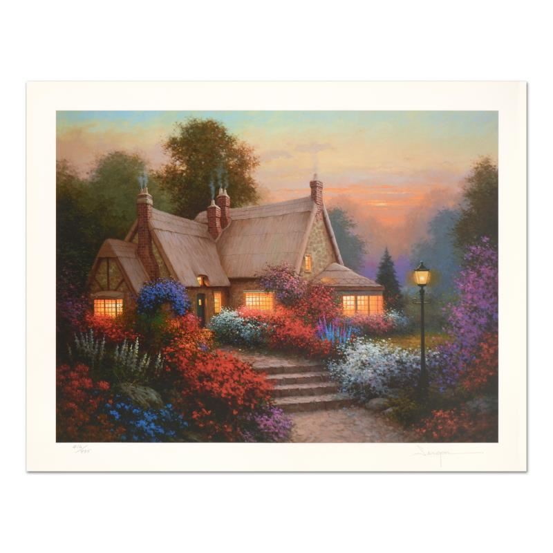 "Evening Glow" is a limited edition giclee on paper by Sergon, numbered and hand signed by the artist. Measures approx. 21" x 16.5" (with border), 18.5" x 15" (image).