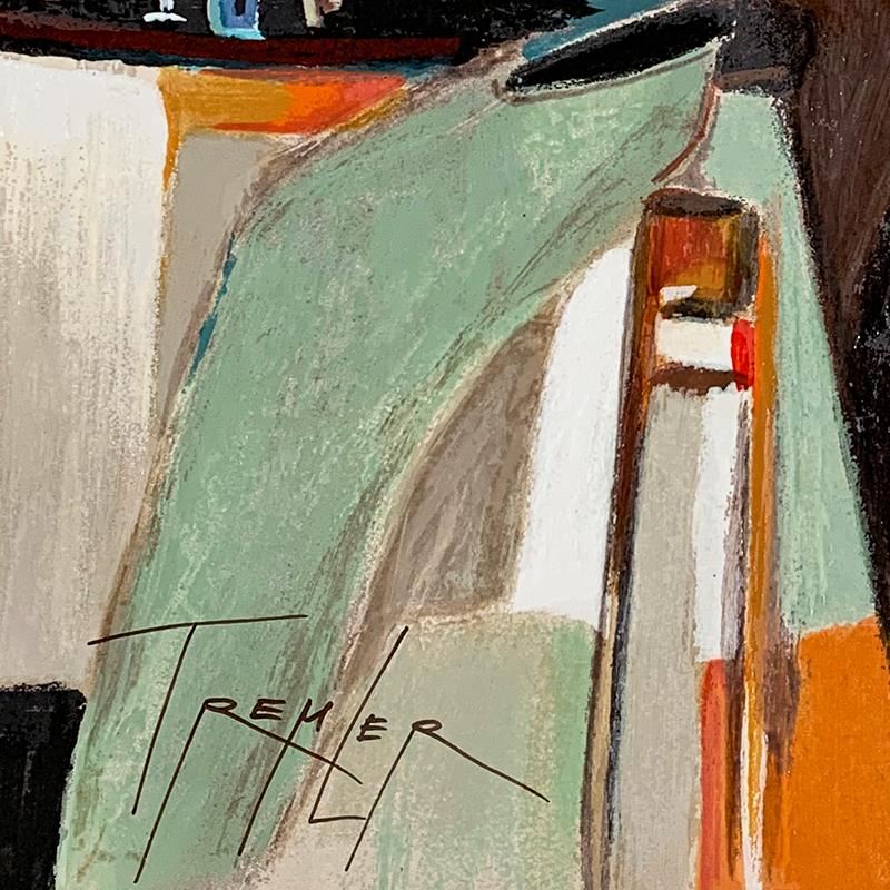 "Evening Out" is a limited edition serigraph on paper by Yuri Tremler. It is numbered and hand signed and includes a letter of authenticity. Measures approximately 13" x 12" (image).