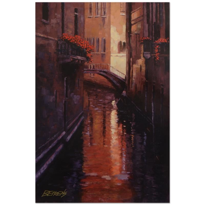 "Evening Shadows - Venice" is a limited edition hand embellished giclee on canvas by Howard Behrens (1933-2014), numbered and bearing the artist's authorized signature. Includes Certificate of Authenticity! Measures approx. 16" x 24" (image).