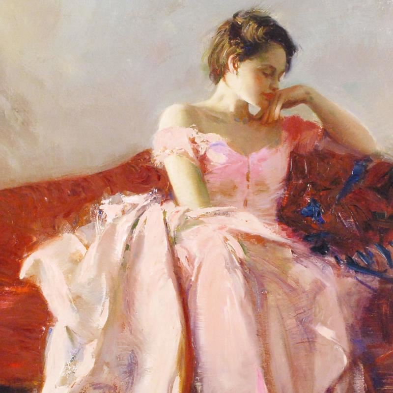"Evening" is a limited edition giclee on stretched canvas that has been hand-embellished by Pino himself, AP Numbered and Hand signed by Pino (1939-2010). Includes Certificate of Authenticity. Measures approx. 30" x 30" (image).
