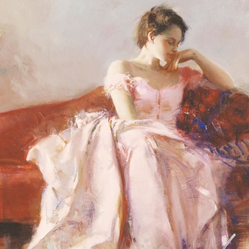 "Evening" is a limited edition giclee on canvas by Pino (1939-2010), numbered and hand signed by the artist. Includes Certificate of Authenticity. Measures approx. 12" x 12" (image).