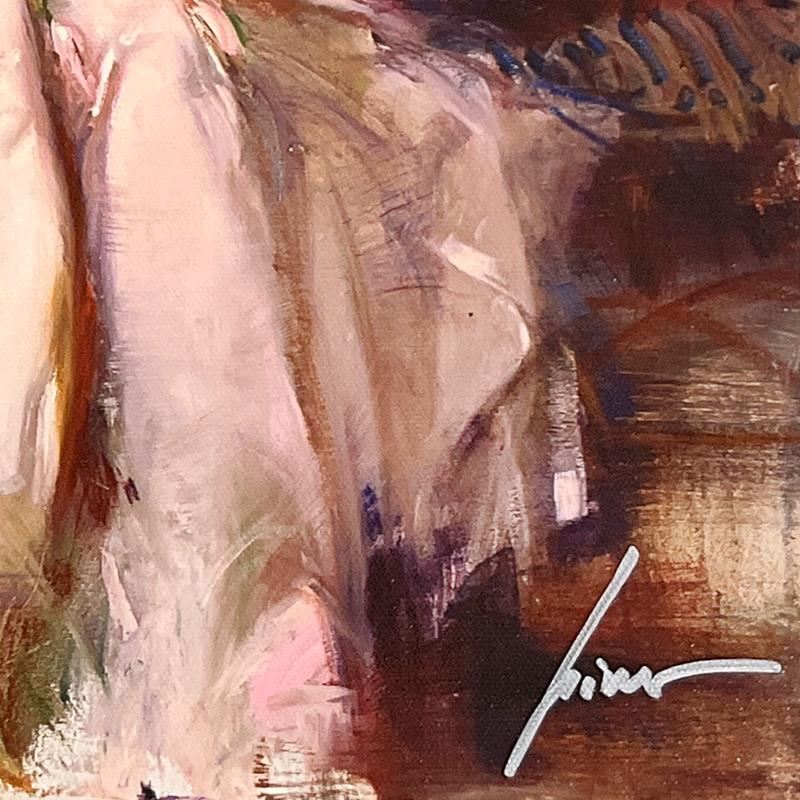 Evening is a limited edition giclee on canvas by Pino (1939-2010), numbered and hand signed by the artist. Includes Certificate of Authenticity. Measures approx. 12 x 12 (image).