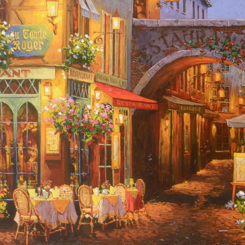 "Evening in Provence" is a limited edition hand embellished serigraph on canvas by Viktor Shvaiko, numbered and hand signed by the artist. Includes Certificate of Authenticity. Measures approx. 30" x 20" (image).