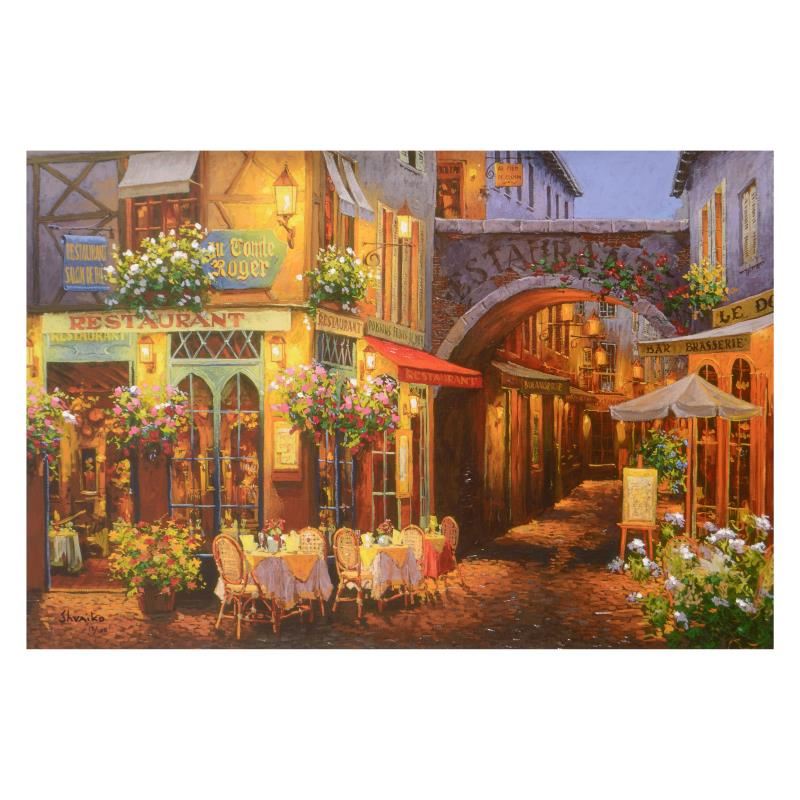 "Evening in Provence" is a limited edition hand embellished serigraph on canvas by Viktor Shvaiko, numbered and hand signed by the artist. Includes Certificate of Authenticity. Measures approx. 30" x 20" (image).