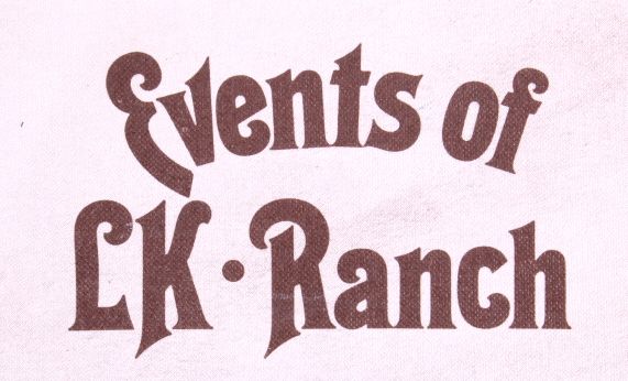This is a "Events of LK-Ranch" book. The book was written by C.H. McKinnon. It chronicles the life and times on the LK ranch located in Alberta Canada. The book is signed by the author to Bob Ross. It measures 7.25" x 10.25".