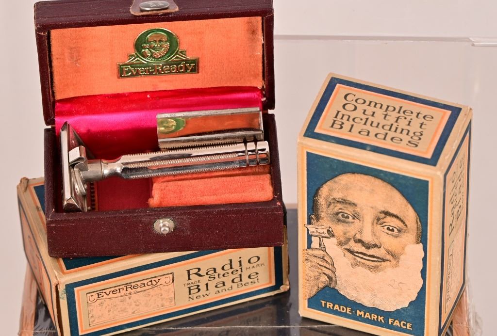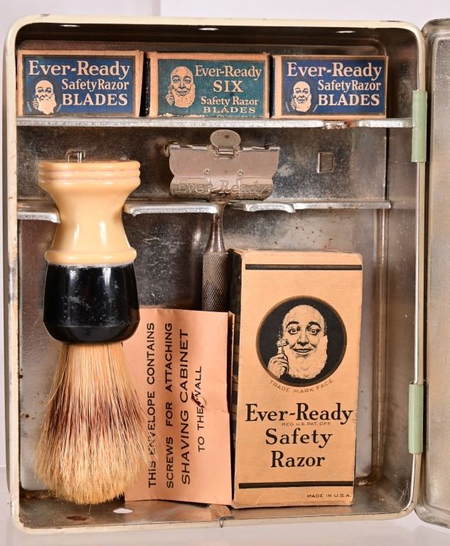 Inclosed NOS Ever-Ready Safetee Razor shaving cabinet and other ephemera.