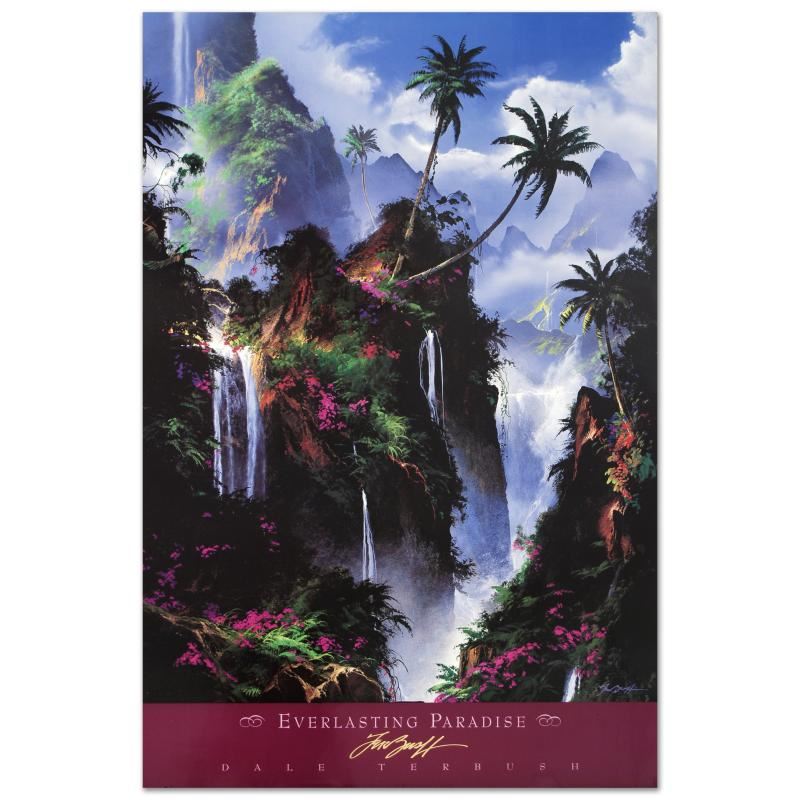 "Everlasting Paradise" is a poster (1996) on paper by Dale Terbush. Measures approx. 24" x 36" (with border), 24" x 32" (image).
