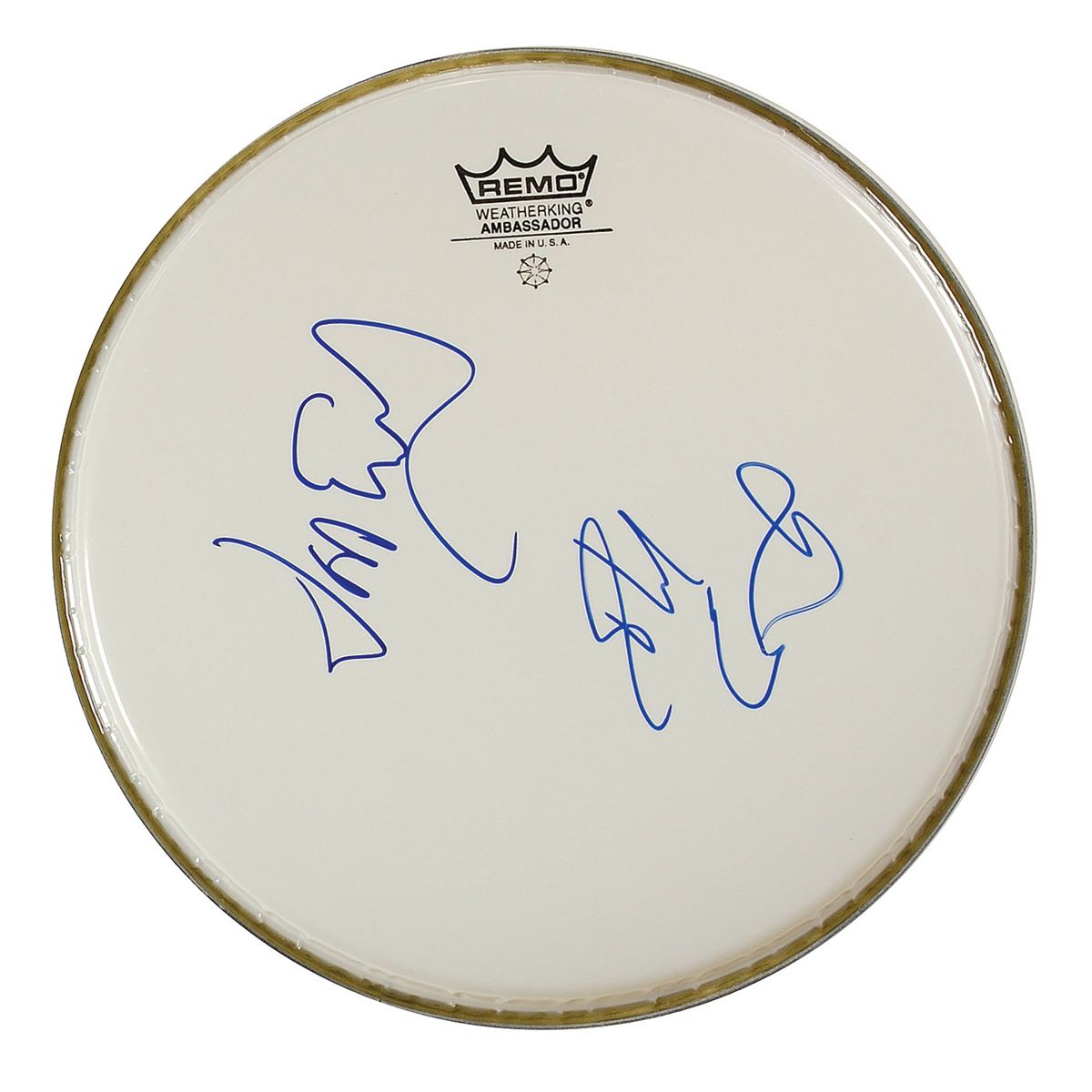 Unused 10? Remo drumhead, signed in blue felt tip by Phil and Don Everly. In fine condition.