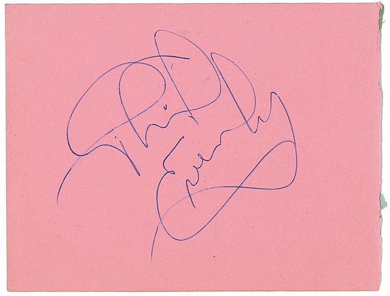 Vintage circa 1963 ballpoint signatures, “Phil Everly” and “Don Everly,” on individual pink and blue 4.5 x 3.5 album pages. In fine condition. Accompanied by a certificate of authenticity from Tracks.