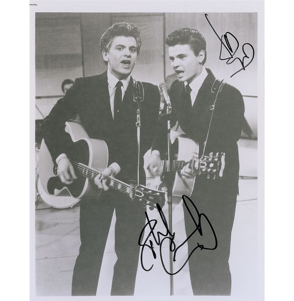 Two glossy photos of the Everly Brothers, 8 x 10 and 10 x 8, each signed in felt tip by Phil and Don Everly. In overall fine condition.