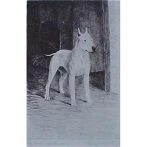 Every Inch a Gentleman an etching by Marguerite Kirmse (1885-1954). What a handsome American Bull Terrier.Image size 9 3/4 inches high x 6 3/4 inches wide. Artist signed and titled. Hinge mounted. There is one minor foxing spot in the image otherwise in very good condition. Please excuse the reflections as these are photographed in natural light.