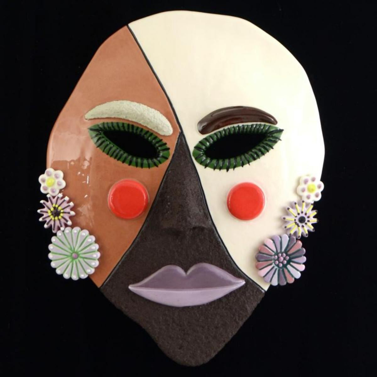 "Every Woman VI" Original Hand-Made Ceramic Mask Sculpture by George Marlowe, with Certificate of Au