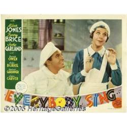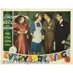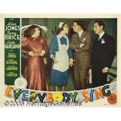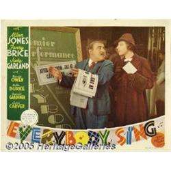 <B>Everybody Sing (MGM, 1938)</B></I> Lobby Cards (3) (11" X 14"). Three cards featuring Fanny Brice from this MGM musical co-starring Allan Jones, as well as Judy Garland in her fifth film. Pinholes, edge and corner wear, slight toning and a few very small stains. Very Fine. 3 items