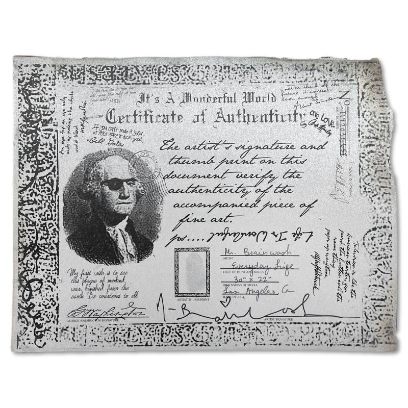 "Everyday Life" is a mixed media original on deckle edge paper by Mr. Brainwash, hand signed inverso and bearing the thumbprint of the artist. This piece comes custom framed. Includes Certificate of Authenticity. Measures approx. 26" x 34" (frame), 22" x 30" (image).