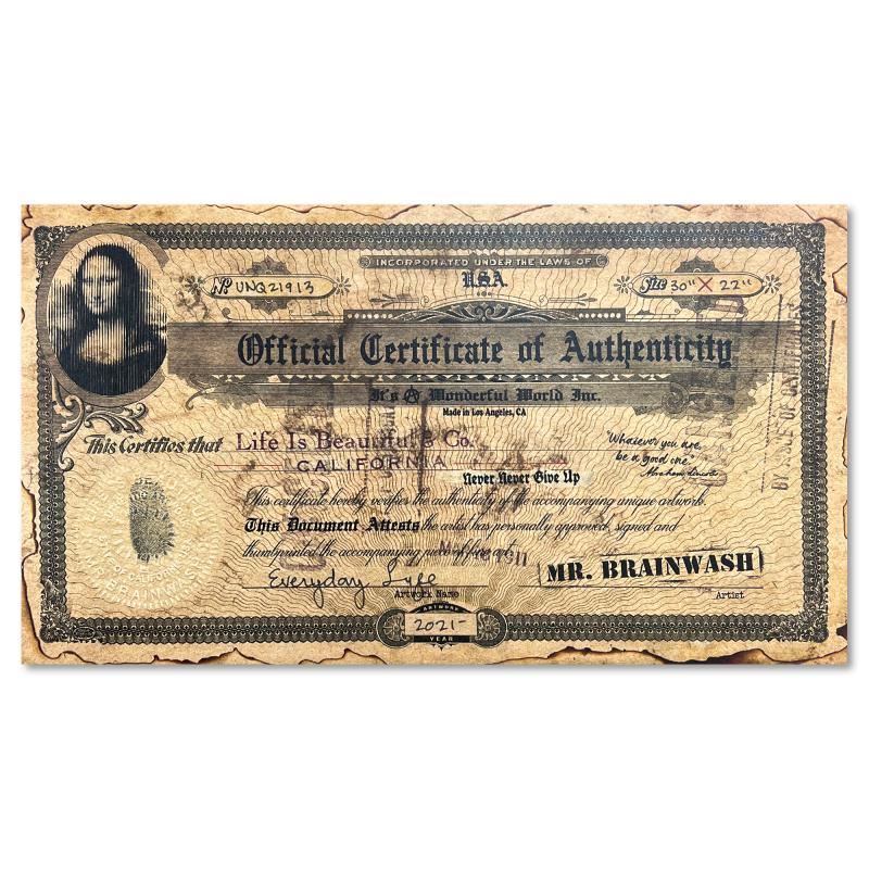 "Everyday Life" is a unique (UNIQ) mixed media on deckle edge paper by Mr. Brainwash, hand signed inverso and bearing the thumbprint of the artist. This piece comes custom framed. Includes Certificate of Authenticity. Measures approx. 26" x 34" (frame), 22" x 30" (image).