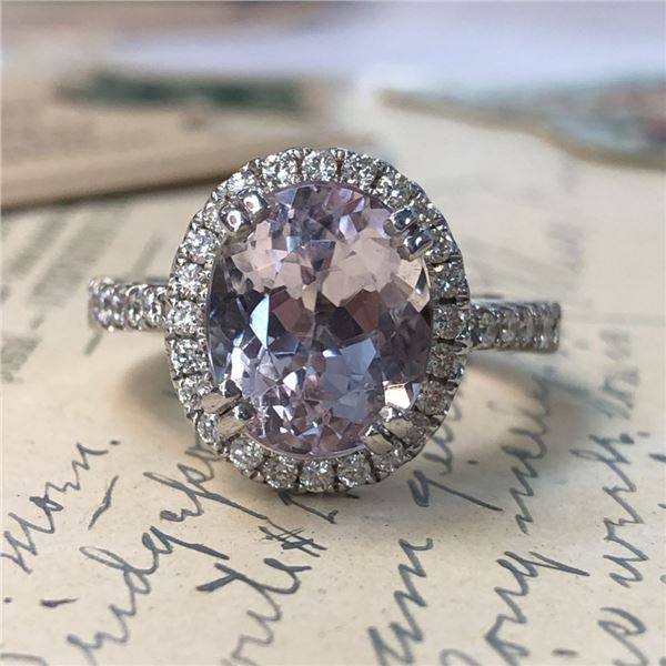 DESCRIPTION DETAIL: Genuine Kunzite and Earth-Mined Diamond Ring