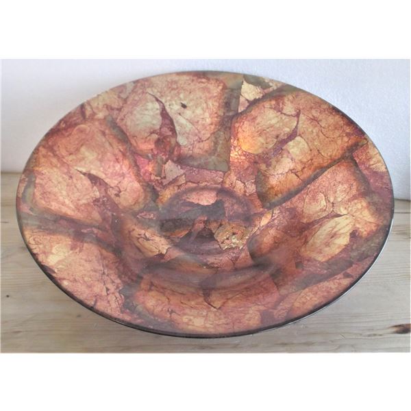 Large Glass Bowl - Gold Leaf Design - 16" Diameter