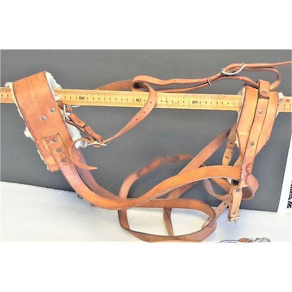 Was originally made to fit a 80-90lbs Lab many years ago. Originally used for pulling children in a sled. The dog in photos not included in this lot