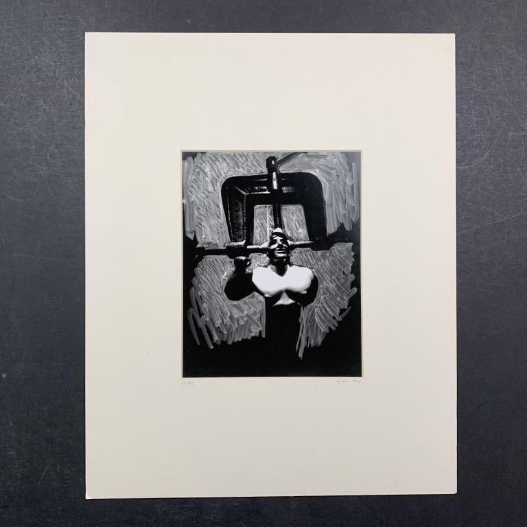 Eves' "Popular Mechanics" Limited Edition Photographic Print. The head of a childs toy has been placed in a vice. This piece is matted in off-white and is signed in the lower right and numbered 4/50 in the lower left. It is in excellent condition.