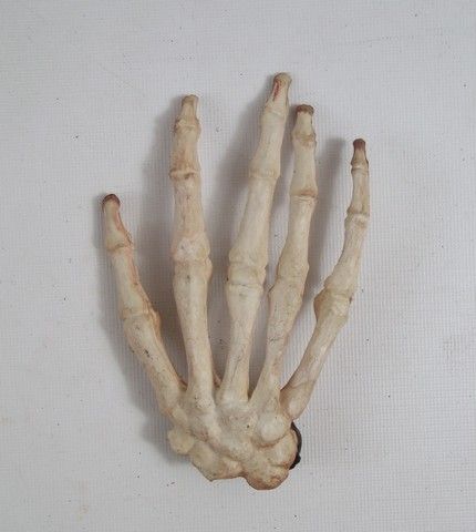 Evil Dead (1981) Skeleton Hand Prop - From the original "don't go into the woods" horror blood-fest" of a movie, Sam Raimi's "The Evil Dead" (1981) comes this plastic skeleton hand used in the production. (Approx. 6" long).