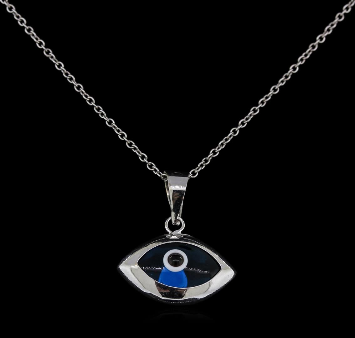 One evil eye pendant with chain featuring: 14KT white gold weighing 1.94 grams.