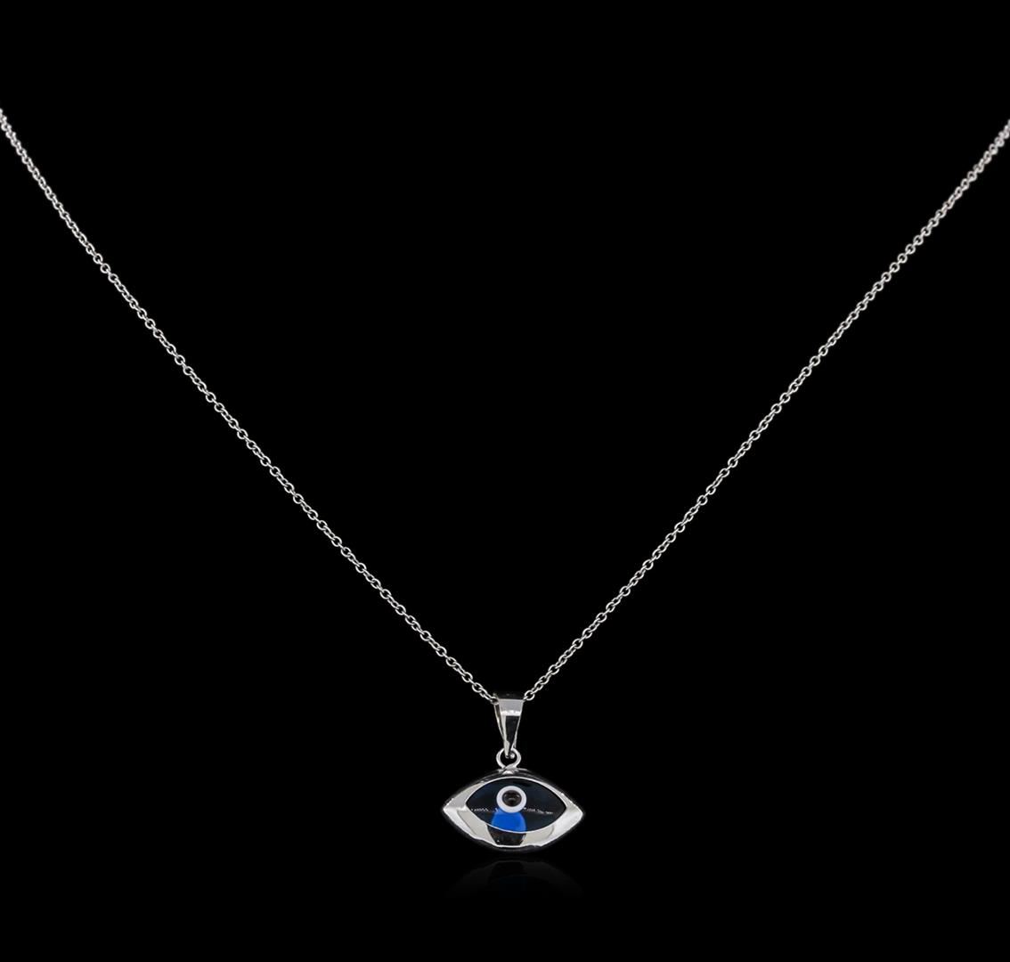 One evil eye pendant with chain featuring: 14KT white gold weighing 1.94 grams.