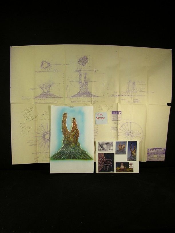 Hand drawn and colored piece of concept art and a blueprint for the De Niro Tree of Evolution (2001). This lot further includes a printed sheet with color drawings of the tree. From the collection of renowned special effects makeup artist Steve Johnson, with a certificate of authenticity from Elemental LLC.