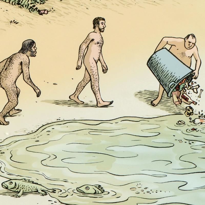Enter a surreal and satirical world of twisted imagination and award winning creativity. "Evolution Trash" is a limited edition giclee on paper by Dan Piraro, creator of the critically acclaimed and award winning comic strip, Bizarro! This piece is framed, numbered and hand signed by the artist! Includes Certificate of Authenticity! Measures approx. 22" x 15" (with frame), 15" x 8" (image).