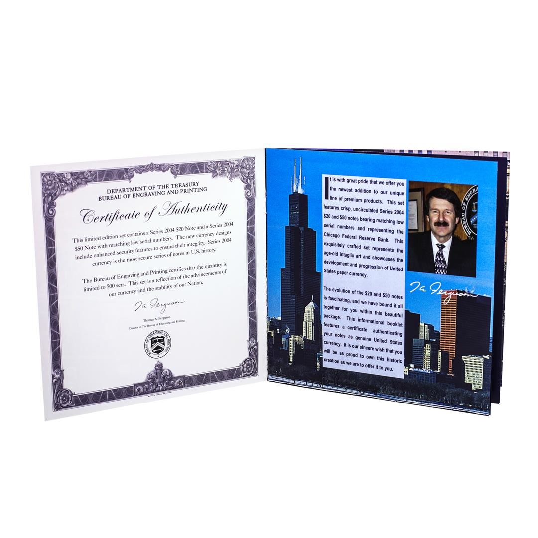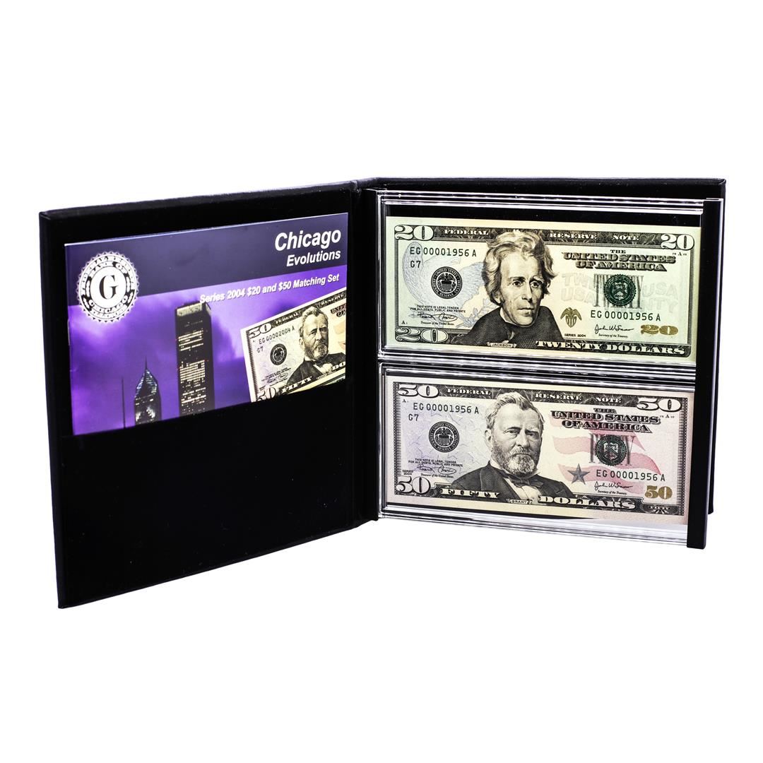 Evolutions Series 2004 $20 & $50 Federal Reserve Note Chicago Matching Serial Numbers