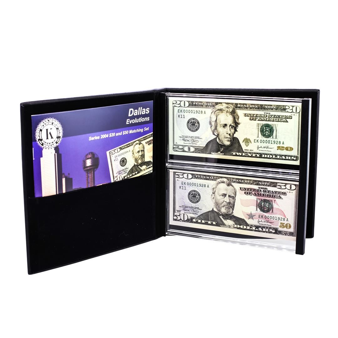 Evolutions Series 2004 $20 & $50 Federal Reserve Note Dallas Matching Serial Numbers