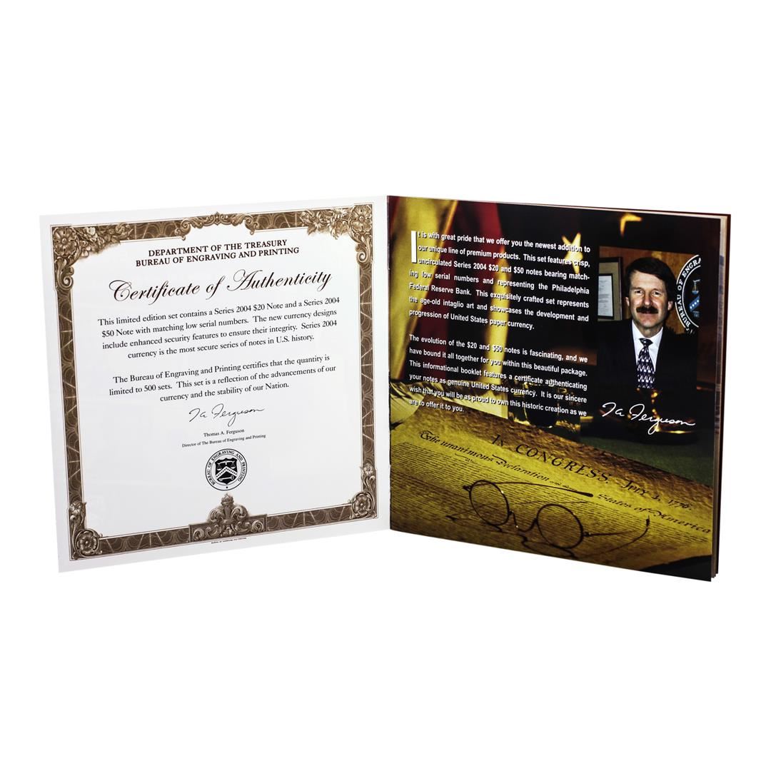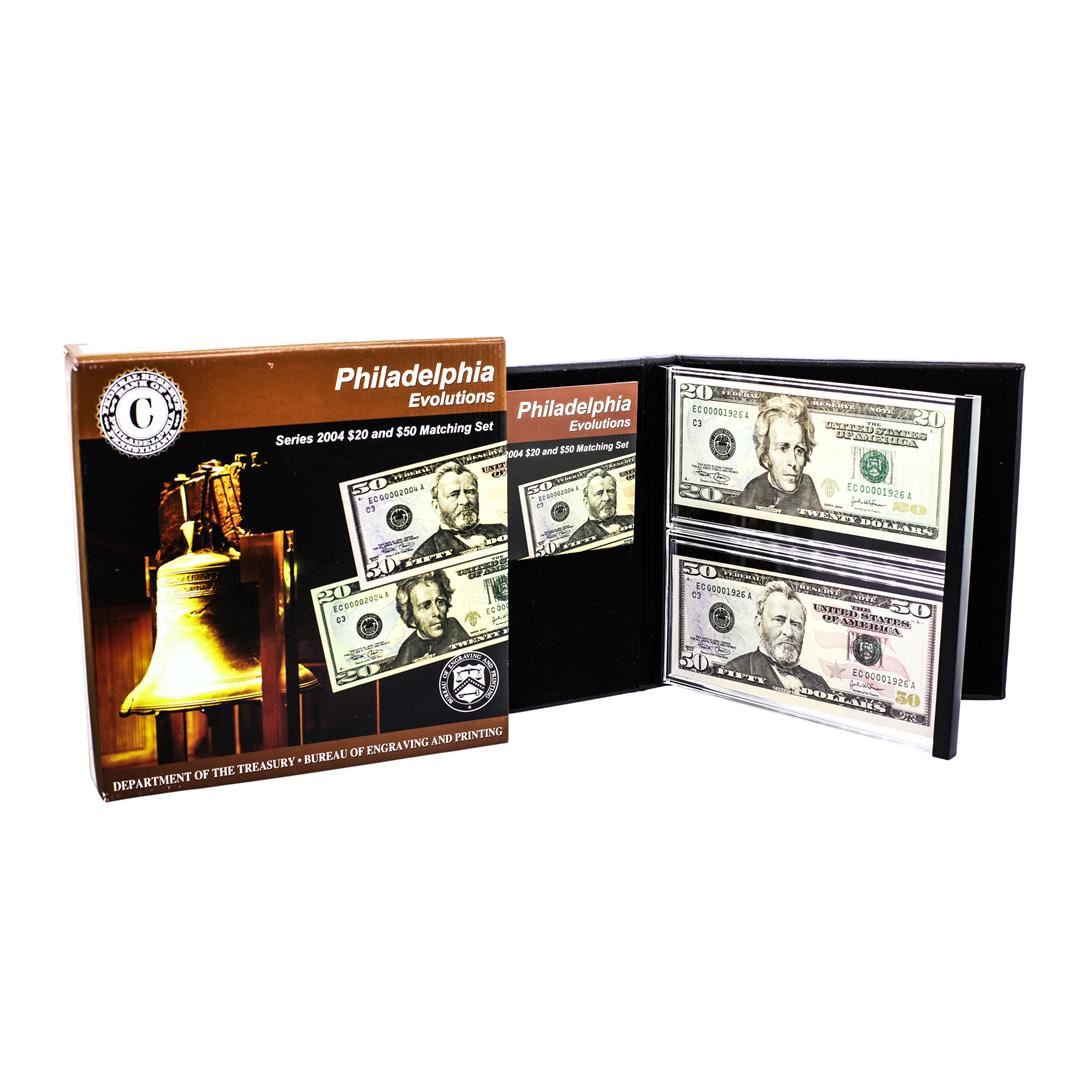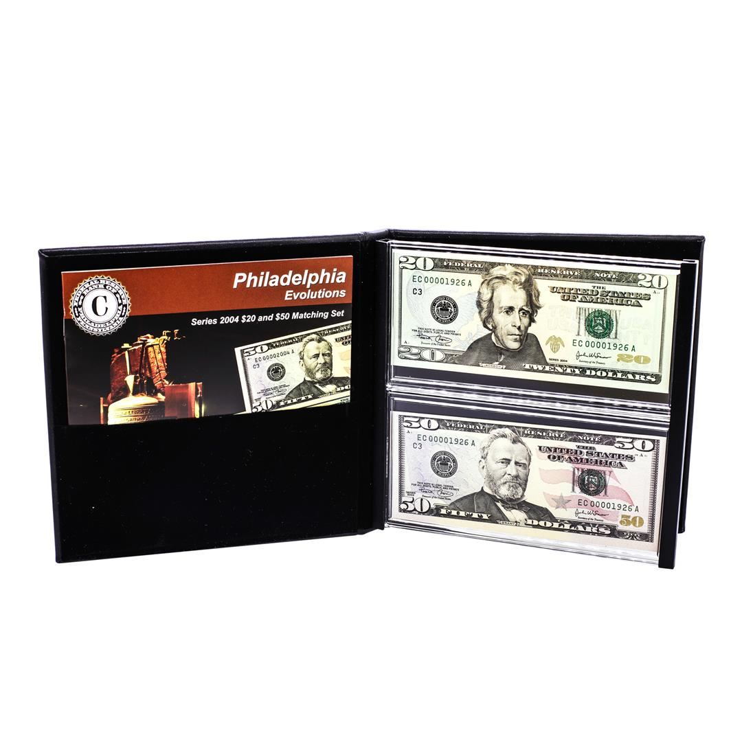 Evolutions Series 2004 $20 & $50 Federal Reserve Note Philadelphia Matching Serial #'s