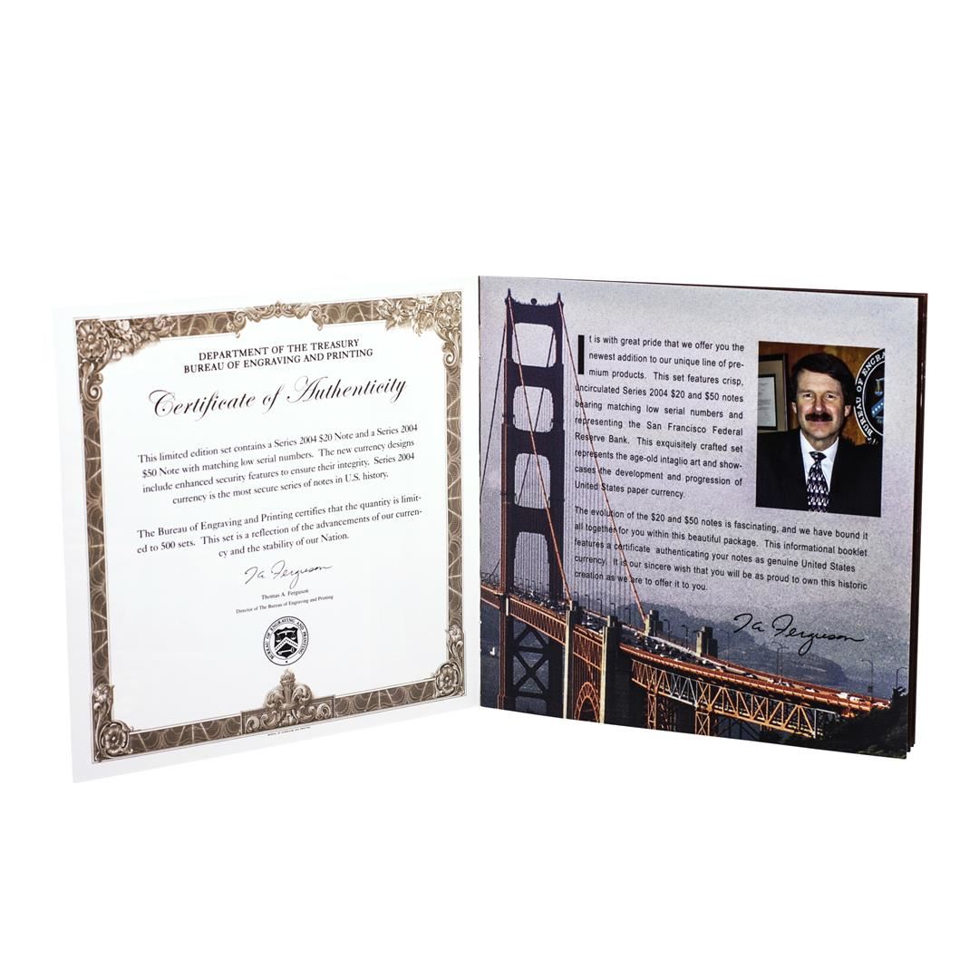Evolutions Series 2004 $20 & $50 Federal Reserve Note San Francisco Matching Serial's