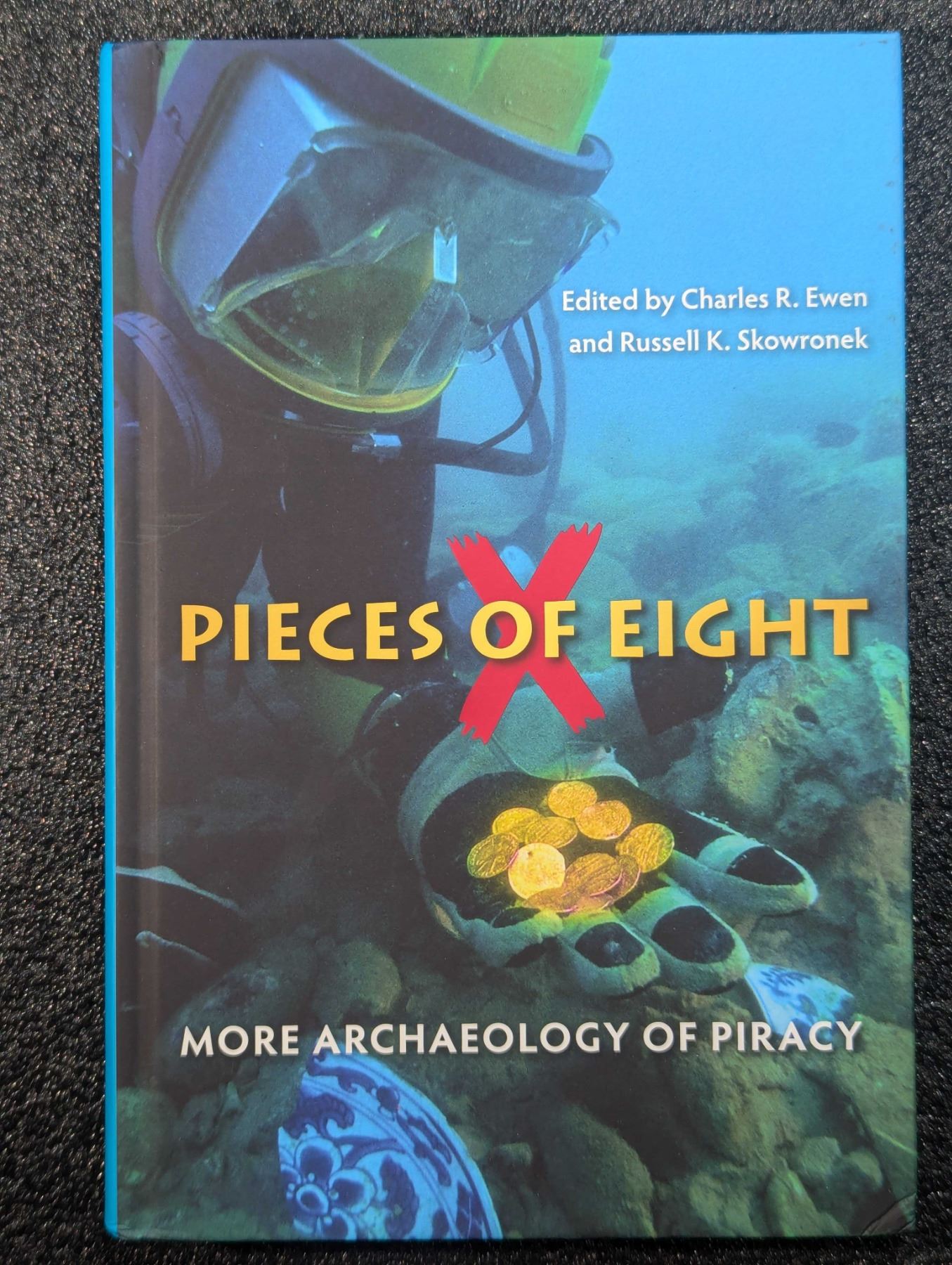 Ewen, Charles R. & Russell K. Skowronek [editors]. PIECES OF EIGHT - MORE ARCHAEOLOGY OF PIRACY. The University of Florida Press, Gainesville. 2016. 8vo. xviii, 318 pages. original pictorial boards. Maps. Charts. Tables. Bibliography. B&w photos and illustrations throughout. English text. The David Baker Library. Fine. Expanding on the book, 'X Marks the Spot, this book explores the newest findings in the maritime archaeology of piracy. It examines the latest discoveries at Captain Henry Morgan's encampments in Panama, and includes explorations of Blackbeard's Queen Anne's Revenge', Bartholomew 'Black Bart' Robert's 'Ranger', Christopher Condent's 'Fiery Dragon' and Captain Kidd's 'Quedagh Merchant' The book also includes a chapter on Ireland's golden age of piracy, Hollywood's influence on pirate archaeology, and 3 chapters on how pirate ships are identified. Lot weight: 1 lbs 6oz. Subject(s): Pirates, Underwater Archaeology.