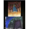 Handpainted backgrounds for animation cels, created for the animated Star Wars: Ewoks series of 1985-1986. They depict an elaborate royal chamber and the outside of a dome. (14.5x10.5, 13x11)