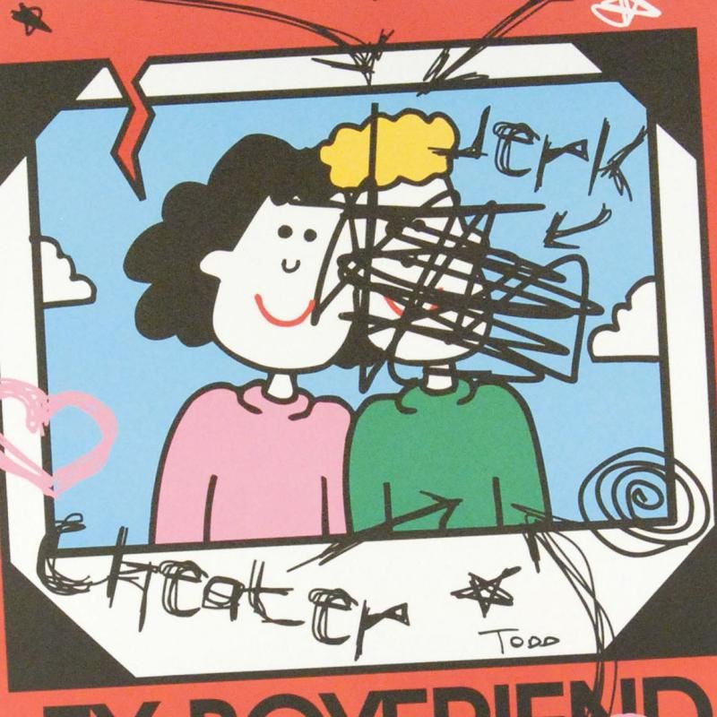 ADD THE IRREVERENT ARTWORK OF WORLD-RENOWNED ARTIST TODD GOLDMAN TO YOUR COLLECTION! Pop artist Todd Goldman is known all across the globe for his whip-smart and wickedly funny puns and pictures! "Ex-Boyfriend" is a fine art litho poster hand signed by Todd. Measures approx. 24" x 36" (poster).