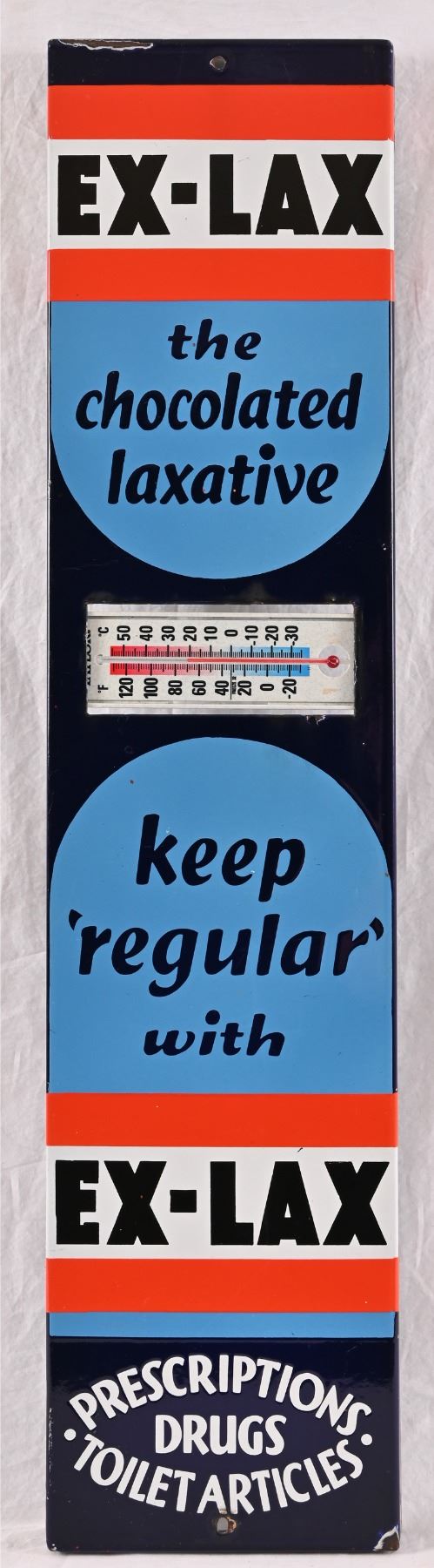 Circa 1930s-1950s. Thermometer is a replacement. Sign measures 8" x 36".