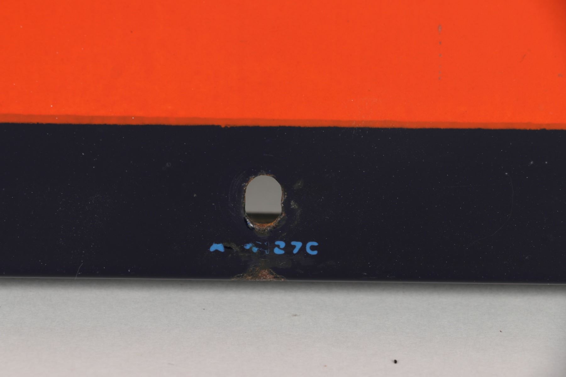 Single-sided porcelain. Maker-marked along lower edge. "Keep 'Regular' With" version. 36" x 8" x 1.25". Exceptional original condition. No restoration or touch-ups. $400-600.